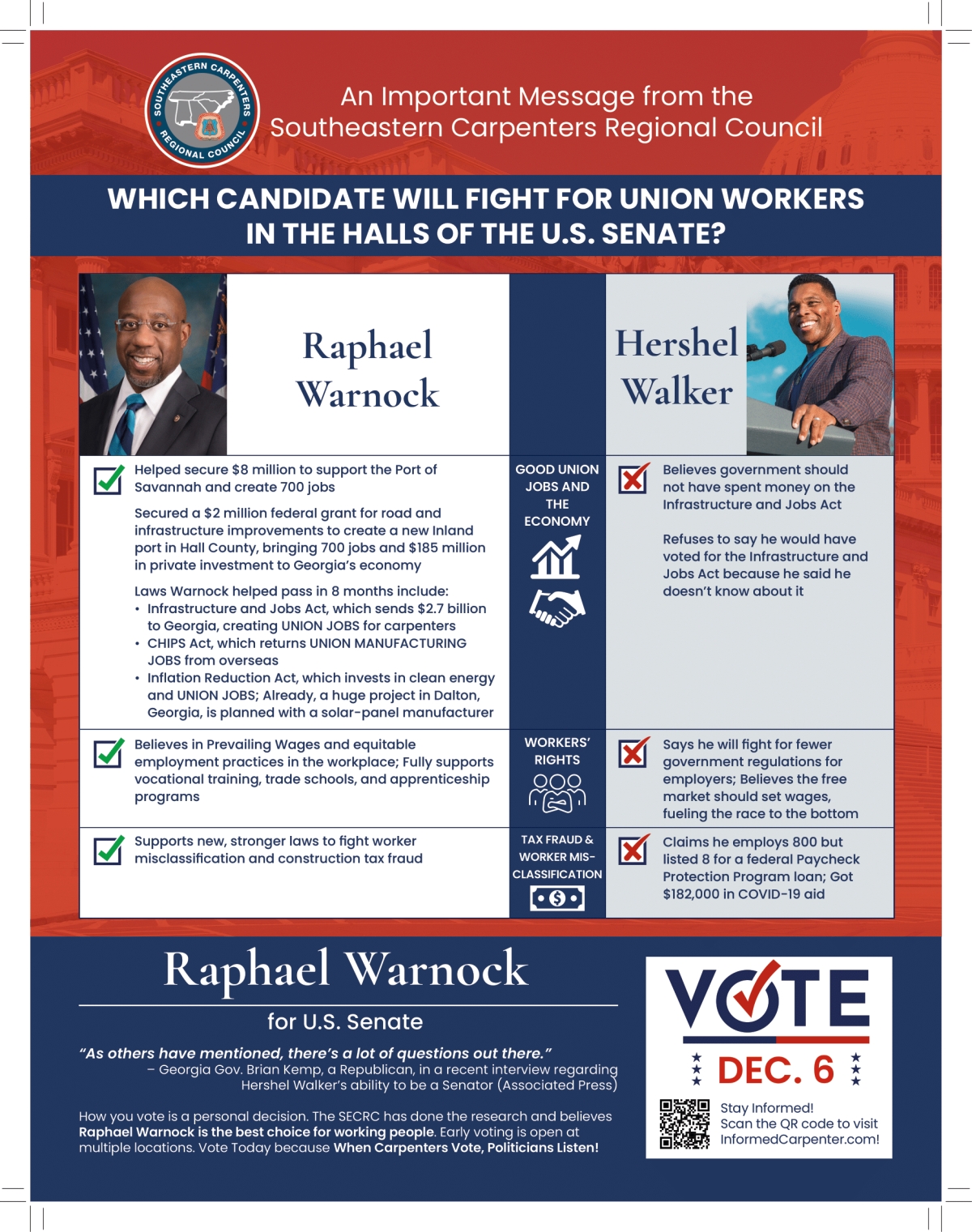 Compare The Candidates for the December 6 Runoff File: Georgia candidate comparison flyer 2022, SECRC-runoff.pdf Return to News